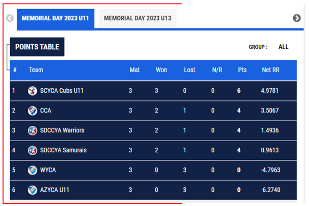 Scorecards: https://cricclubs.com/SDCCYA
