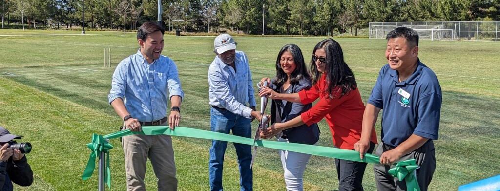 Ribbon-Cutting Ceremony for the New Cricket Pitch in Cypress Community Park, Irvine The ribbon-cutting ceremony today was a success! Thanks to everyone who could make it. We have high hopes for the future of cricket here in Irvine!